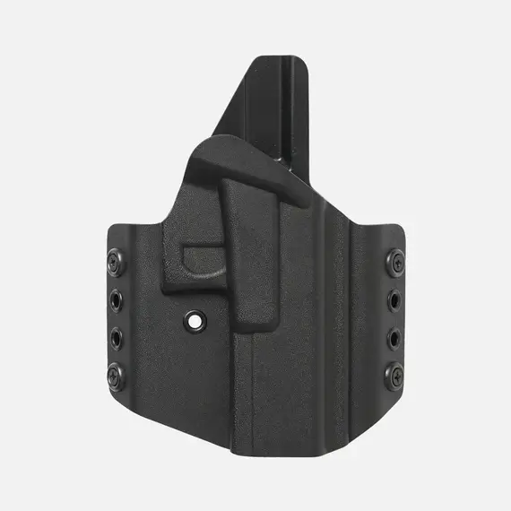 Эта прочная кобура в виде блинчика для Glock 17 предназначена для обеспечьте более дискретный и очень удобный вариант переноски.добный вариант переноски. Все возможные излишки материала были обрезаны, чтобы снизить видимость и сделать максимально комфортными такие ситуации, как длительное сидение в автомобиле. Форма чехла и его края стали более выразительными. Кобура изготовлена из натурального материала Kydex®, поэтому она не только долговечна, но и надежно удержит ваш пистолет даже при динамичных движениях. Кобура Zero Cant позволяет установить пистолет вертикально на вашем снаряжении. Мы решили заменить дюймовые винты на метрические.Кобура OWB ZERO CANT NO LIGHT совместима со всеми поколениями пистолетов Glock, включая пистолеты с оптикой и нарезными стволами.
