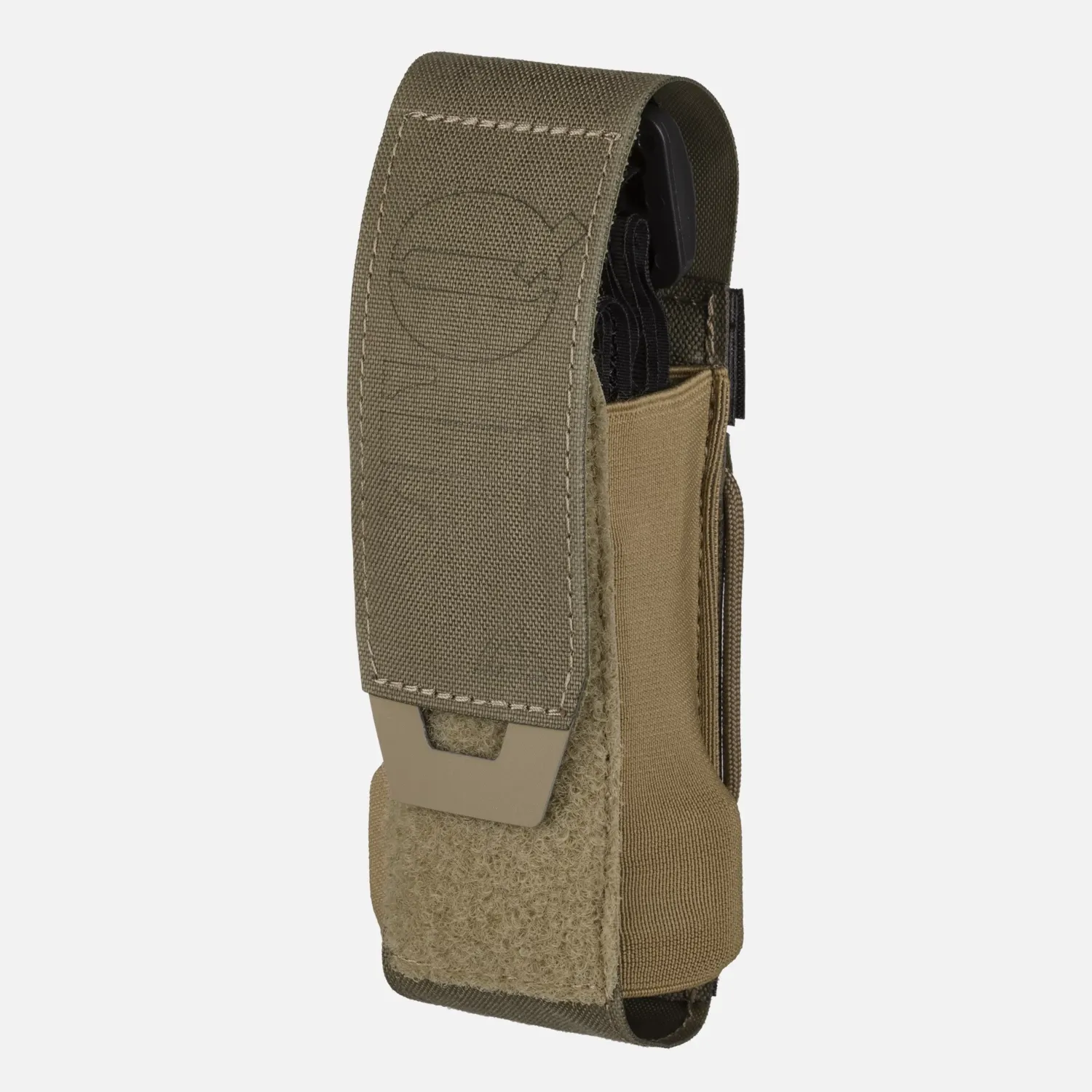 Сумка изготовлена из ламината фирменной формы, вырезанного лазером, и снабжена эластичными боковыми ремешками, которые надежно удерживают жгут на месте. Клапан с застежкой на крючок защищает содержимое от выпадения и предотвращает загрязнение поверхности крючка, не задерживая доступ. Для максимальной скорости также доступна версия с открытым верхом.