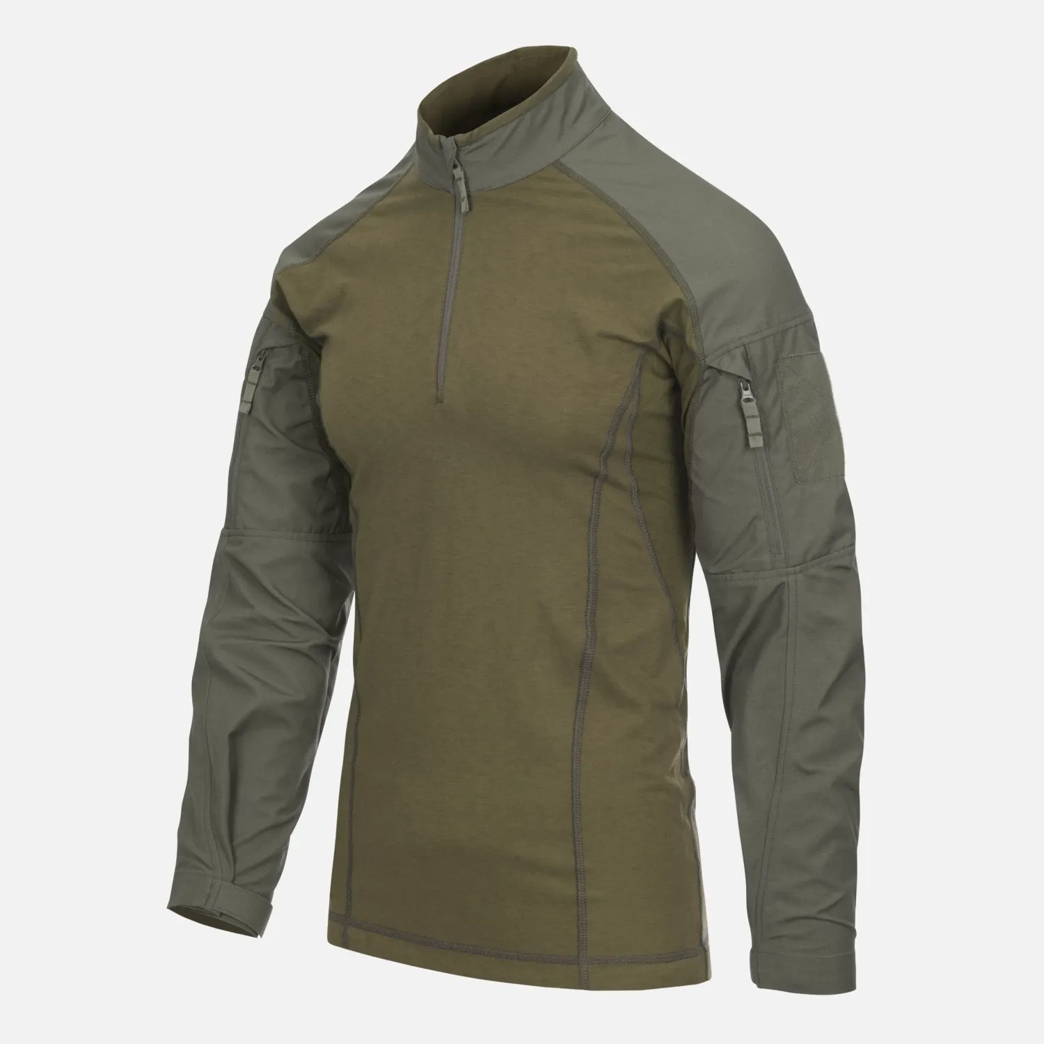 Торс изготовлен из трикотажа Polartec® PowerDry FR – эластичного, приятного на ощупь и эффективно отводящего влагу от тела. Этот материал не только повышает тепловой комфорт, но и надежно работает при длительном ношении под пластинчатым каркасом. Рукава изготовлены из ткани NYCO (хлопок + нейлон), устойчивой к истиранию и разрывам, но при этом пропускающей воздух.
