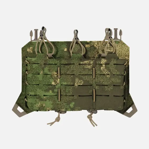 ТРОЙНОЙ КЛАПАН МАГАЗИНА ВИНТОВКИ имеет одна из дополнительных заслонок, доступных для системы SPITFIRE®.ых для системы SPITFIRE®. Регулируемый тройной подсумок для винтовки, пришитый непосредственно к клапану, позволяет носить три магазина для винтовок AR, AK или SR на платформе. Магазины также крепятся сверху с помощью эластичных шнуров с противоскользящими фиксаторами Hypalon®. Клапан почти полностью изготовлен из фирменного ламината, который не только гарантирует долговечность, но и немного жестче, чем стандартная Cordura®, что позволяет легко убирать магазины в кобуру. Передняя поверхность откидной створки покрыта системой лазерной резки, совместимой с MOLLE/PALS, что обеспечивает дополнительную модульность. Откидная створка совместима с пластиночными креплениями SPITFIRE®, SPITFIRE® MK II и HELLCAT®. Клапан может быть прикреплен к держателю пластины через специальные отверстия в клапане или с помощью прилагаемых пряжек.