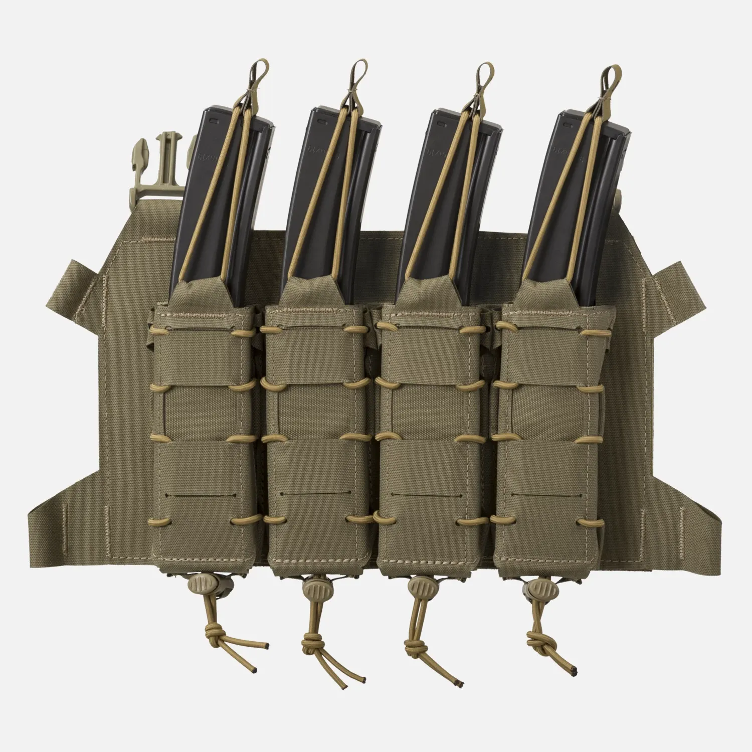 Чрезвычайно легкий скелетированный клапан, предназначенный для переноски четырех магазинов SMG, включая MP5 или даже Scorpion Evo. Оснащен модульной системой лазерной резки, совместимой с MOLLE/PALS. Клапан идеально сочетается с патронником BEARCAT® и системой SPITFIRE®. Магазины крепятся сверху эластичными шнурами с защелками Hypalon®. Клапан крепится к патроннику с помощью двух боковых застежек. Благодаря дополнительному интерфейсу его можно превратить в компактное устройство для переноски на груди.