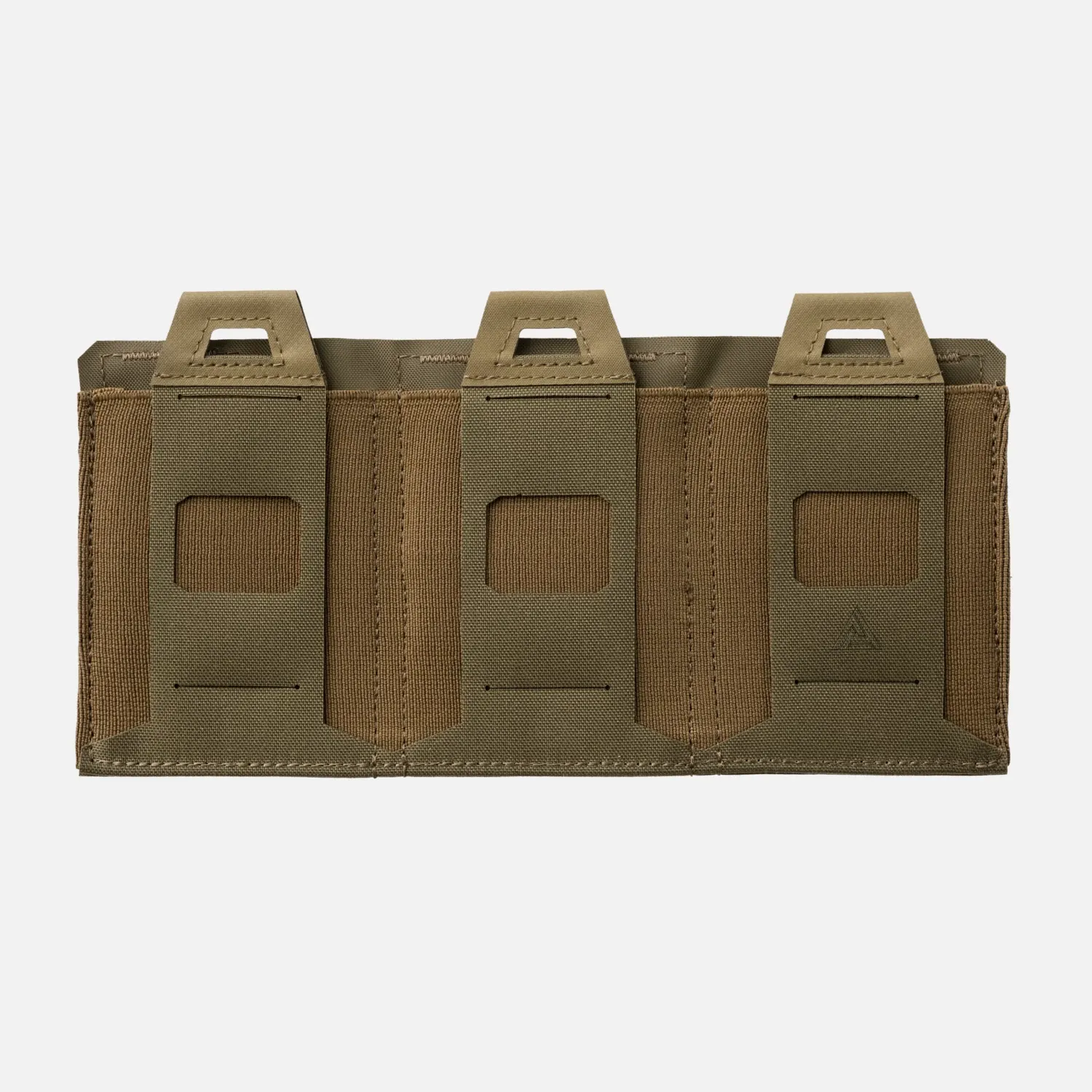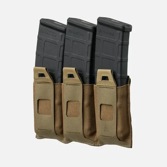 Эластичный подсумок Triple Flat - это тройной плоский подсумок, предназначенный для дополнительного снаряжения. Его плоская и легкая конструкция минимально увеличивает вес снаряжения, но позволяет носить дополнительные магазины, гранаты или другое снаряжение. Благодаря своему дизайну и используемым материалам (сочетание ламината и резины), в пустом виде сумка занимает минимум места. В передней части сумки вырезаны лазером отверстия, совместимые с системой MOLLE/PALS. Он герметичен снизу, обеспечивая защиту боеприпасов от грязи.
