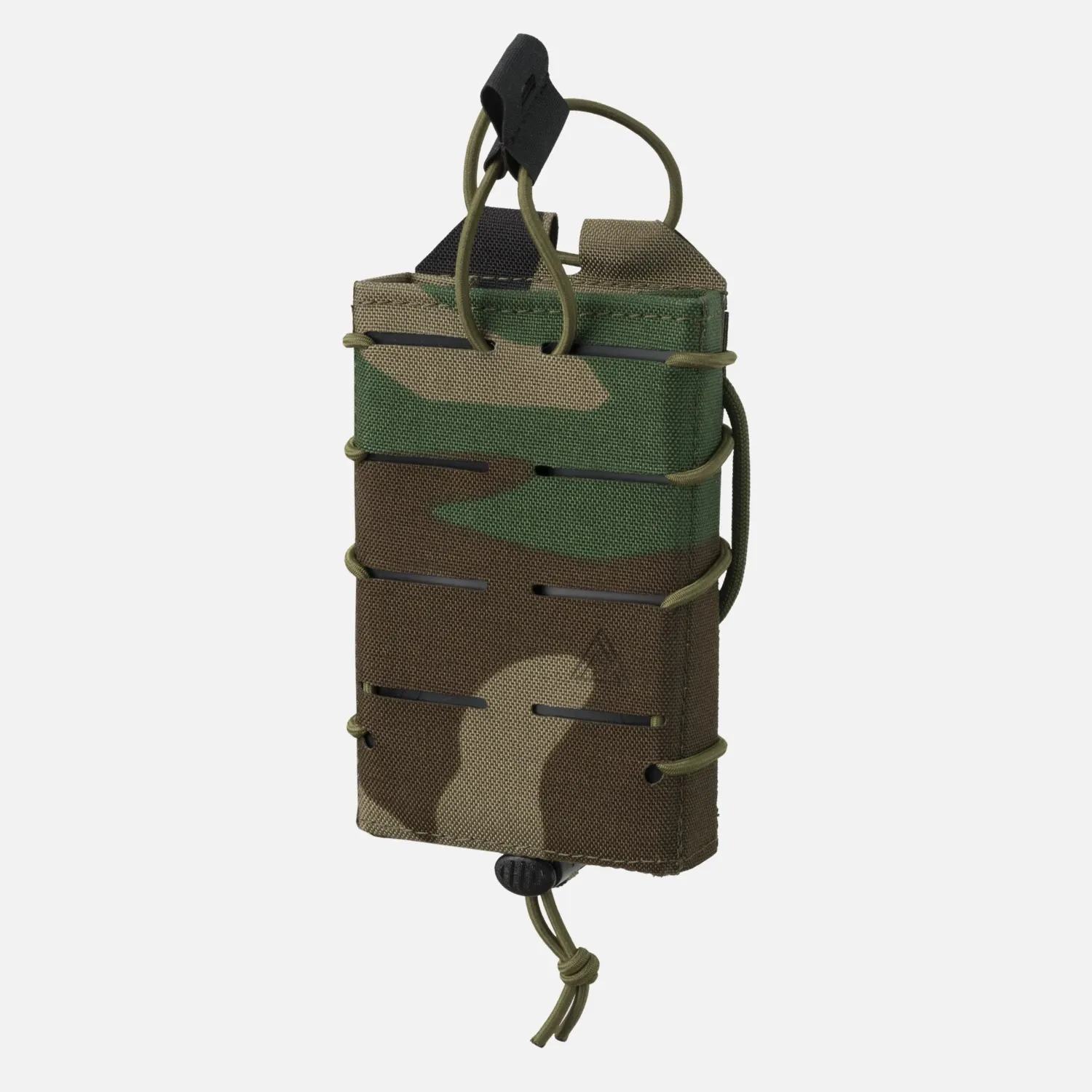 Винтовка Speed Reload Pouch с открытым верхом предназначена для молниеносной замены магазина без риска потерять его. Его внутренняя поверхность увеличивает трение, в то время как компактное отверстие и регулируемое крепление ударного шнура обеспечивают сохранность магазина, но при этом он готов к извлечению за долю секунды.Изготовленный из полужесткого фирменного ламината, усиленного вставками, и обернутый в Cordura®, подсумок сохраняет свою форму, даже когда он пуст, что особенно важно при перезарядке в темноте или под давлением. В него помещается один магазин типа AR, AK или SR.Подсумочная винтовка Speed Reload крепится непосредственно к тактическим поясам или платформам MOLLE/PALS. Передняя панель, вырезанная лазером, позволяет складывать дополнительные пакеты, не увеличивая объем упаковки.