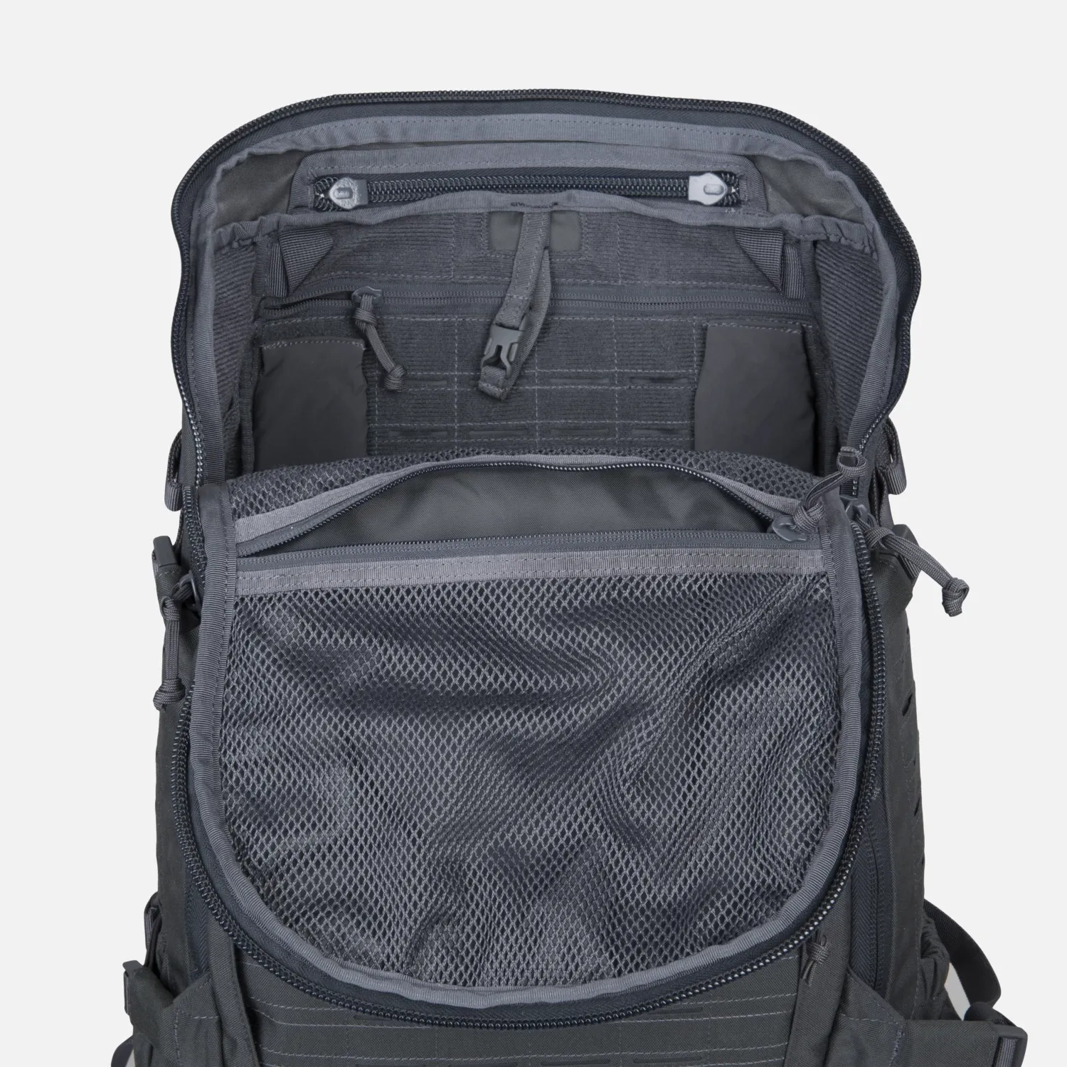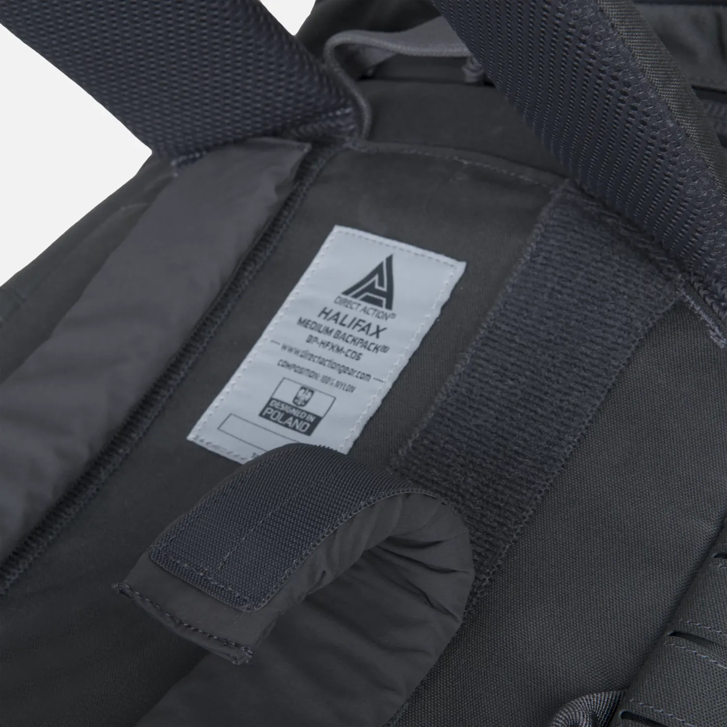 Рюкзак HALIFAX® medium полностью адаптирован для патрулирования в полевых условиях. В нем имеется большое основное отделение, закрывающееся на молнию YKK®.Внутренняя часть обшита велюровой тканью для установки дополнительных подсумков. Задняя часть внутренней панели также покрыта лазерной резкой MOLLE/PALS, что позволяет переделать этот ранец в медицинский ранец, штурмовой ранец, ранец для взломщиков или даже в ранец для радиосвязи, используя внутренние точки крепления. В верхней части клапана расположены два кармана, один из которых обшит велюром. Наружный слой спинки покрыт лазерной резкой MOLLE/PALS.