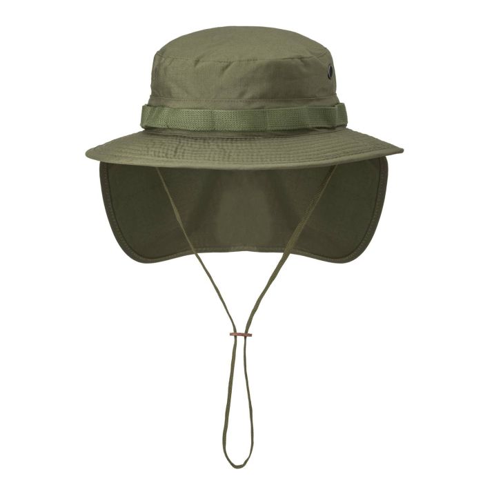 Военная шляпа характерного дизайна с узкими и регулируемыми полями в британском /австралийском стиле. Окружность регулируется в соответствии с размером головы. Традиционные металлические вентиляционные отверстия были заменены скрытыми сетчатыми туннелями (по бокам и сверху), улучшающими циркуляцию воздуха. Защитная лента повышает комфорт и предотвращает скопление пота на лбу. Предназначена в основном для лесозаготовок. Обеспечивает эффективную маскировку головы.