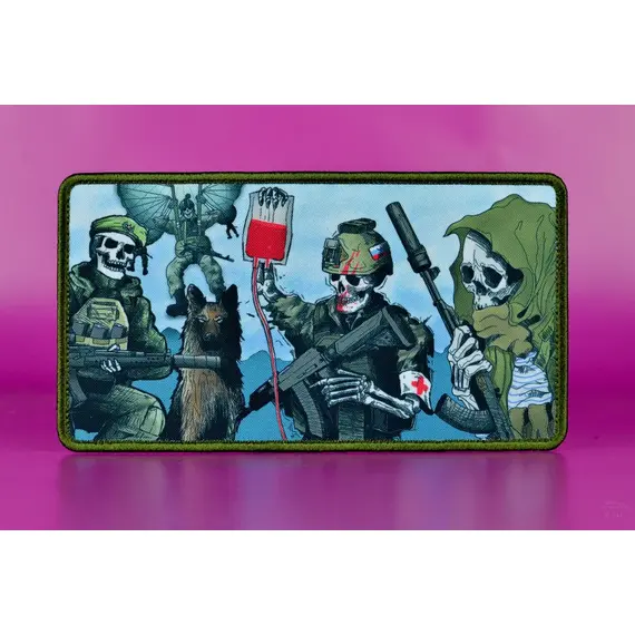 Нашивка, патч "Четверо и собака" большая тактическая с липучкой.