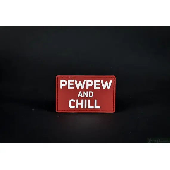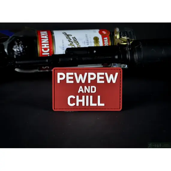 Нашивка, патч "Pew Pew and Chill" ПВХ тактическая с липучкой. Быстросъемная нашивка на липучке - велкро, для одежды, шапок, рюкзаков, сумок и тд. Размер: 50х80 мм