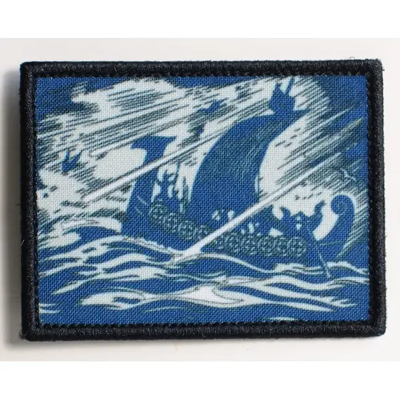 Нашивка, патч тактический "Драккар и викинги" с липучкой ( твердая часть вэлкро).